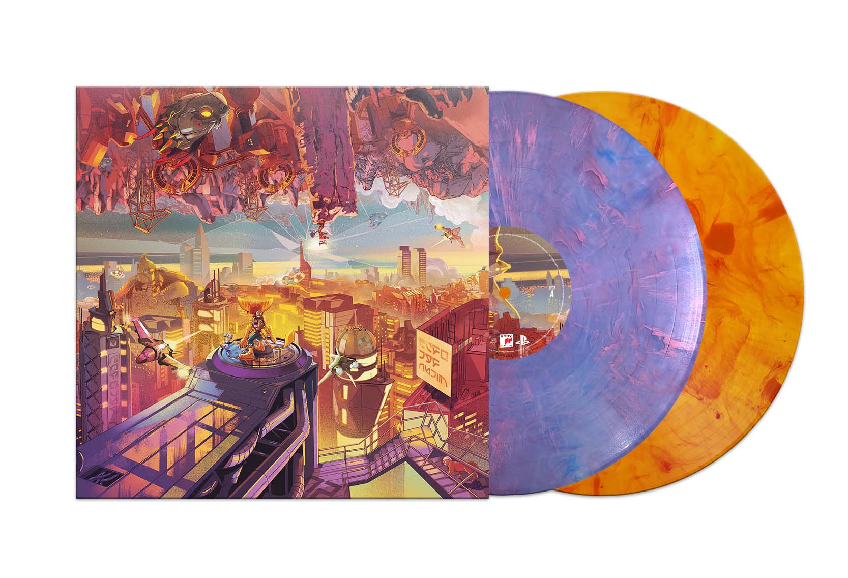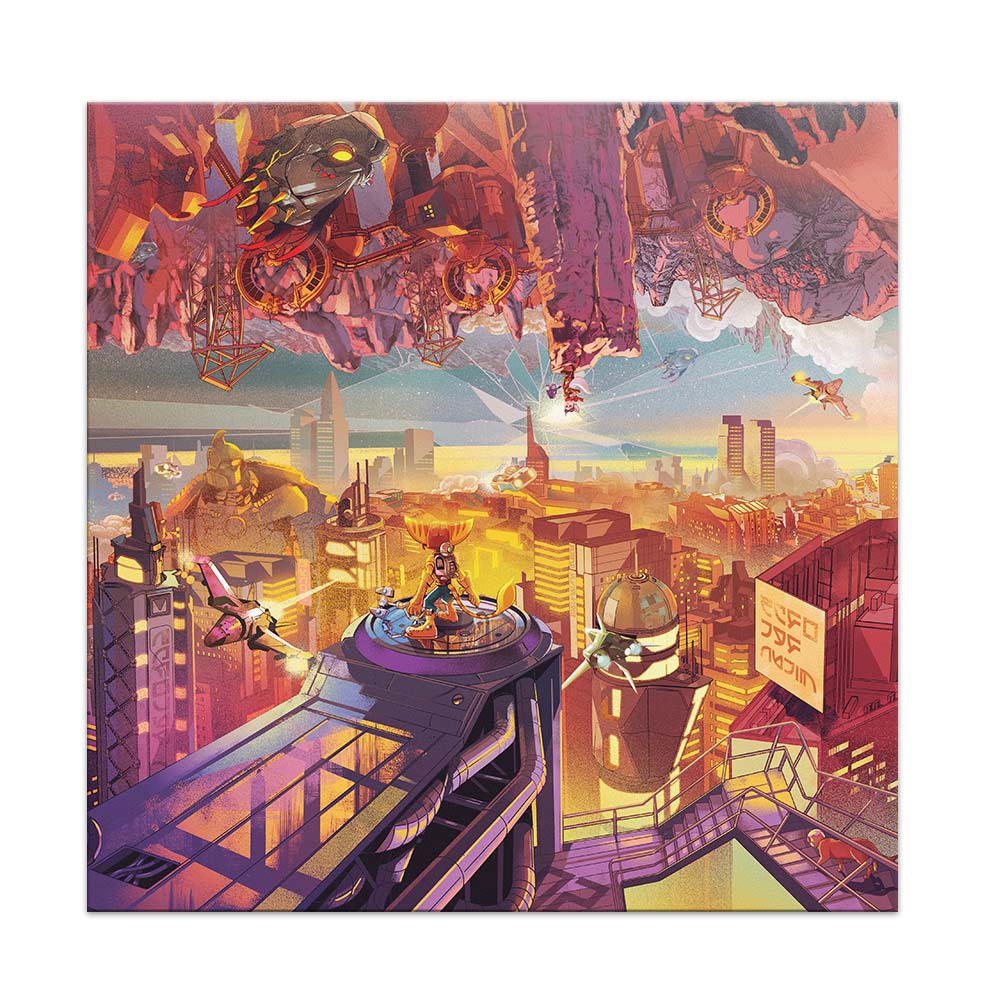 This release features twenty tracks of original music composed by Mark Mothersbaugh and Wataru Hokoyama for Ratchet & Clank: Rift Apart pressed on a pair of dimensional rift color vinyl discs and housed in a gatefold jacket with original artwork by Shan Jiang.